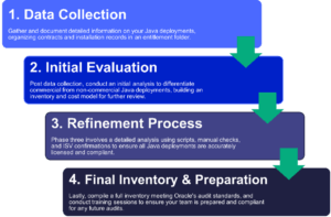 The first stage is to compile comprehensive information on your Java deployments. Use available tools to track and document all relevant data, ensuring that everything is organized into an entitlement folder. This documentation should include all contracts and installation records essential for understanding your Java usage.