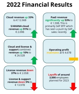 SAP have recently announced their Full Year 2022 financial results. The results can often indicate how SAP will act during the following year and provide important updates for customers to be aware of. In this article we distill the key points from the 2022 financial results earning call and read between the lines to see if further insights can be gleaned from these statistics.